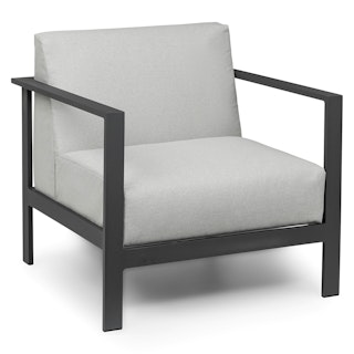 Sit back and relax. Designed with an exposed powder-coated aluminum frame and ergonomic design sensibility, the Burkel has got your back. Featuring a cushy yet firm seat and back cushion, this lounge chair is upholstered in a durable abrasion-resistant basketweave fabric equipped with waterproof slips for added protection against the elements.