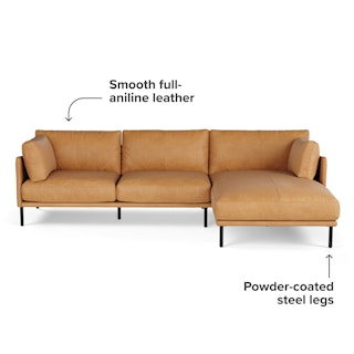 - Upholstered in Charme Leather, our full-aniline leather that’s smooth to the touch and untreated for a natural look
