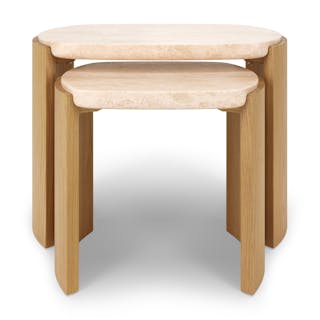 What's better than one travertine-topped side table? two?! Okay, we got you. Isla’s clever nesting design guarantees plenty of space for guests, then tucks away effortlessly when you want your room open and uncluttered. Who doesn't love the natural beauty of travertine? AKA the stone the ancient Romans used to build the Colosseum (no big deal)