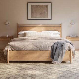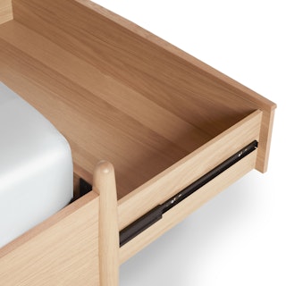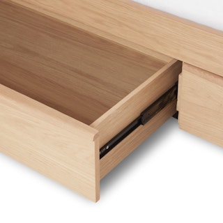 Simple pleasures… but now with storage. All the hits of the Lenia series — tapered legs, solid and veneered walnut, panel headboard, concealed joinery, an unadorned silhouette — plus four lovely deep drawers for your socks/blankets/book collection/etc.