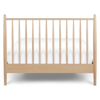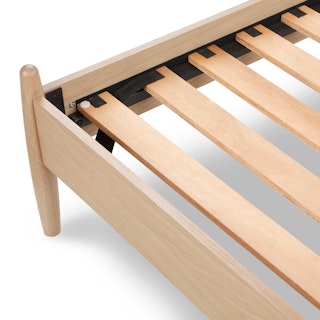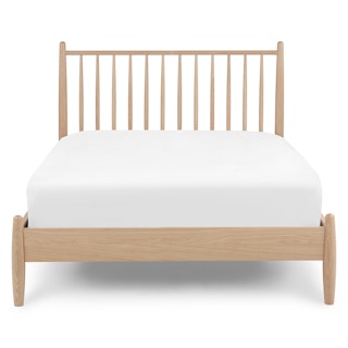 Simple pleasures. The Lenia bed takes notes from the Shaker school of design: tapered legs and spindles, solid and veneered white oak, concealed joinery, and an unadorned silhouette. The Lenia’s quiet beauty will take center stage in your bedroom. Sweet dreams.