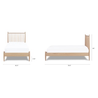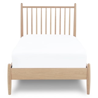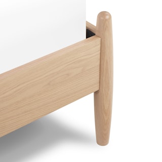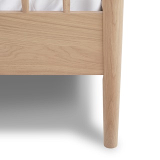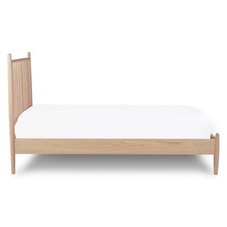 Simple pleasures. The Lenia bed takes notes from the Shaker school of design: tapered legs and spindles, solid and veneered white oak, concealed joinery, and an unadorned silhouette. The Lenia’s quiet beauty will take center stage in your bedroom. Sweet dreams.