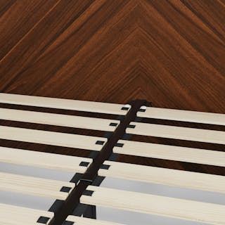 Looks beautiful in our room and perfect height. Sits low but can still fit storage underneath. Very modern and the delivery/setup was smooth.