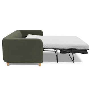 Vati 80" Velvet Sofa Bed - Natural Oak and Hale Fir Green