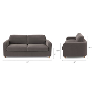 Vati 80" Velvet Sofa Bed - Natural Oak and Hale Warm Gray