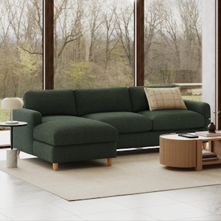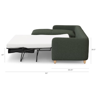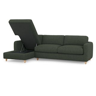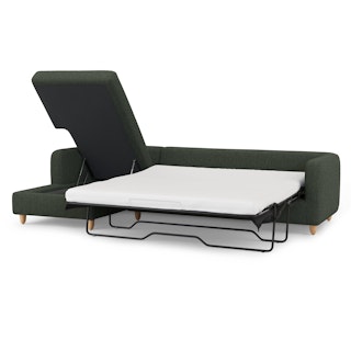 Vati 114" Left Storage Sleeper Sectional - Natural Oak and Green Wool Bouclé
