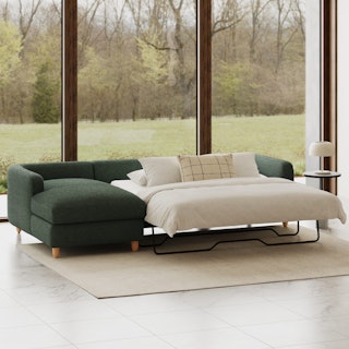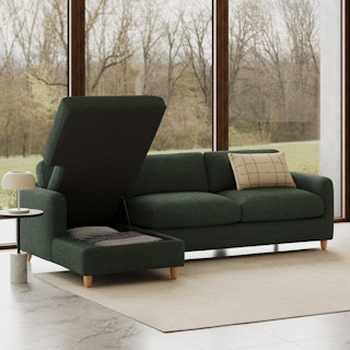 A sectional that can (figuratively) swallow you up... and still have room to store some odds and ends. With its low-profile curvaceous shape and ridiculously cushy cushions, the Vati is such a good-looking sofa you’d hardly know it’s actually a bed and also a treasure chest in disguise. Pop up the chaise seat to reveal a compartment for hiding away your seasonal throw pillows, or a big ol' pile of movie-night blankets. Then, remove the cushions, pull out the memory foam mattress, and voila! Great for when you want a little extra recline or need to house overnight guests. The best part? It’s so inconspicuous, only you get to decide who’s in the know.