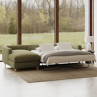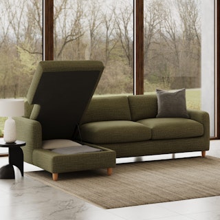 A sectional that can (figuratively) swallow you up... and still have room to store some odds and ends. With its low-profile curvaceous shape and ridiculously cushy cushions, the Vati is such a good-looking sofa you’d hardly know it’s actually a bed and also a treasure chest in disguise. Pop up the chaise seat to reveal a compartment for hiding away your seasonal throw pillows, or a big ol' pile of movie-night blankets. Then, remove the cushions, pull out the memory foam mattress, and voila! Great for when you want a little extra recline or need to house overnight guests. The best part? It’s so inconspicuous, only you get to decide who’s in the know.