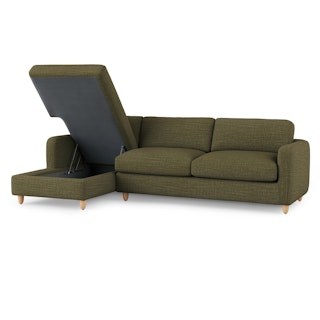 Vati 114" Left Storage Sleeper Sectional - Natural Oak and Napa Moss