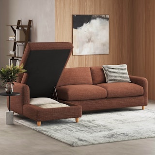 A sectional that can (figuratively) swallow you up... and still have room to store some odds and ends. With its low-profile curvaceous shape and ridiculously cushy cushions, the Vati is such a good-looking sofa you’d hardly know it’s actually a bed and also a treasure chest in disguise. Pop up the chaise seat to reveal a compartment for hiding away your seasonal throw pillows, or a big ol' pile of movie-night blankets. Then, remove the cushions, pull out the memory foam mattress, and voila! Great for when you want a little extra recline or need to house overnight guests. The best part? It’s so inconspicuous, only you get to decide who’s in the know.