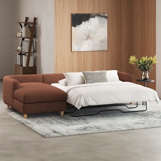 Vati 114" Left Storage Sleeper Sectional - Natural Oak and Napa Rust