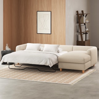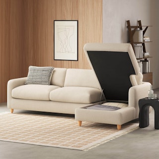 A sectional that can (figuratively) swallow you up... and still have room to store some odds and ends. With its low-profile curvaceous shape and ridiculously cushy cushions, the Vati is such a good-looking sofa you’d hardly know it’s actually a bed and also a treasure chest in disguise. Pop up the chaise seat to reveal a compartment for hiding away your seasonal throw pillows, or a big ol' pile of movie-night blankets. Then, remove the cushions, pull out the memory foam mattress, and voila! Great for when you want a little extra recline or need to house overnight guests. The best part? It’s so inconspicuous, only you get to decide who’s in the know.