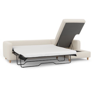 Vati 114" Right Storage Sleeper Sectional - Natural Oak and Ivory Wool Bouclé