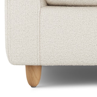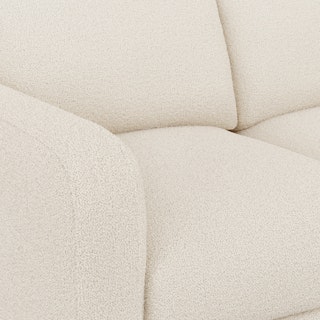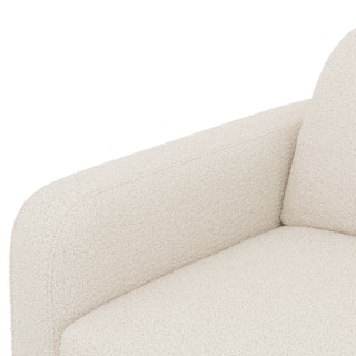 - Upholstered in a soft bouclé fabric