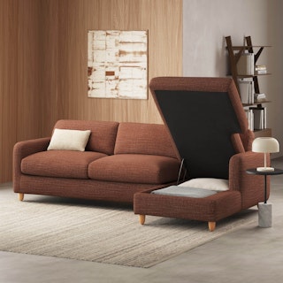 A sectional that can (figuratively) swallow you up... and still have room to store some odds and ends. With its low-profile curvaceous shape and ridiculously cushy cushions, the Vati is such a good-looking sofa you’d hardly know it’s actually a bed and also a treasure chest in disguise. Pop up the chaise seat to reveal a compartment for hiding away your seasonal throw pillows, or a big ol' pile of movie-night blankets. Then, remove the cushions, pull out the memory foam mattress, and voila! Great for when you want a little extra recline or need to house overnight guests. The best part? It’s so inconspicuous, only you get to decide who’s in the know.