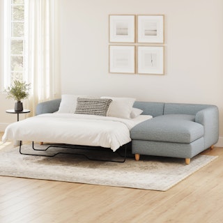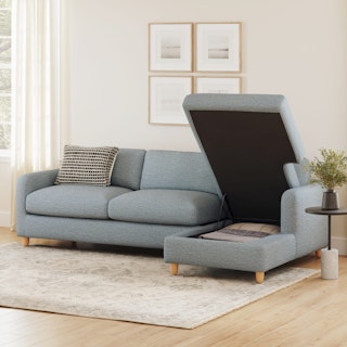 A sectional that can (figuratively) swallow you up... and still have room to store some odds and ends. With its low-profile curvaceous shape and ridiculously cushy cushions, the Vati is such a good-looking sofa you’d hardly know it’s actually a bed and also a treasure chest in disguise. Pop up the chaise seat to reveal a compartment for hiding away your seasonal throw pillows, or a big ol' pile of movie-night blankets. Then, remove the cushions, pull out the memory foam mattress, and voila! Great for when you want a little extra recline or need to house overnight guests. The best part? It’s so inconspicuous, only you get to decide who’s in the know.