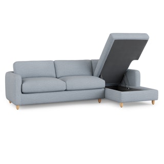 Vati 114" Right Storage Sleeper Sectional - Natural Oak and Silver Light Blue
