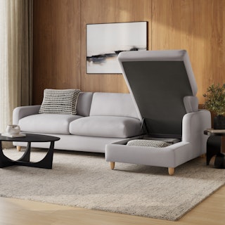 A sectional that can (figuratively) swallow you up... and still have room to store some odds and ends. With its low-profile curvaceous shape and ridiculously cushy cushions, the Vati is such a good-looking sofa you’d hardly know it’s actually a bed and also a treasure chest in disguise. Pop up the chaise seat to reveal a compartment for hiding away your seasonal throw pillows, or a big ol' pile of movie-night blankets. Then, remove the cushions, pull out the memory foam mattress, and voila! Great for when you want a little extra recline or need to house overnight guests. The best part? It’s so inconspicuous, only you get to decide who’s in the know.
