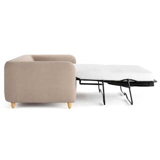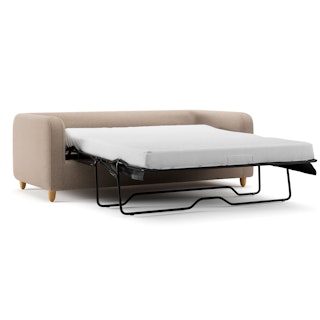 - Upholstered in a soft, non-absorptive bouclé fabric. Bouclé is an excellent choice for those who want an easy-to-care-for, style-forward sofa bed