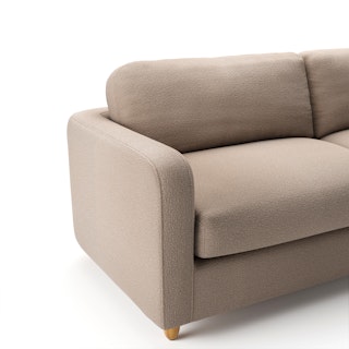 - Upholstered in a soft, non-absorptive bouclé fabric. Bouclé is an excellent choice for those who want an easy-to-care-for, style-forward sofa