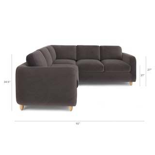 Vati 92" Velvet Corner Sectional - Natural Oak and Hale Warm Gray