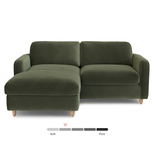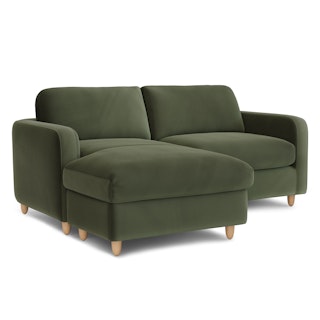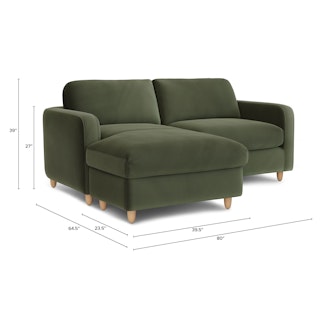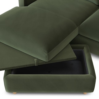 Vati 80" Velvet Left Storage Sectional - Natural Oak and Hale Fir Green