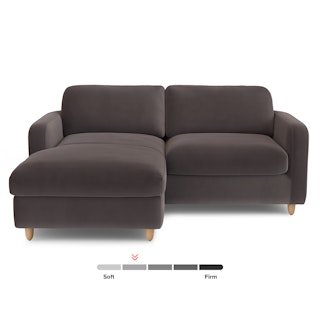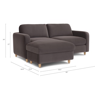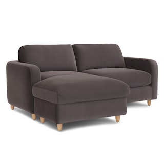Vati 80" Velvet Left Storage Sectional - Natural Oak and Hale Warm Gray