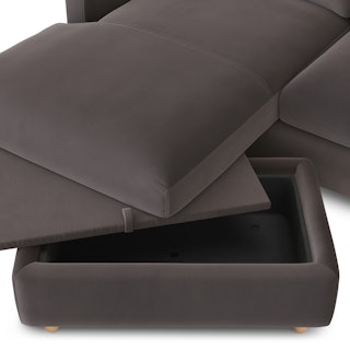 - Ottoman storage accessible by lifting the hydraulic-assisted chaise cushion