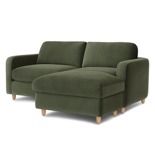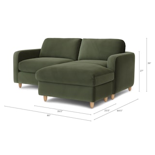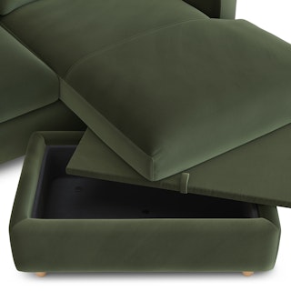 Vati 80" Velvet Right Storage Sectional - Natural Oak and Hale Fir Green