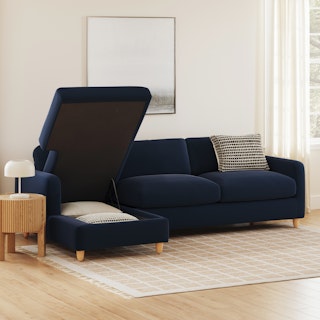 - Ottoman storage accessible by lifting the hydraulic-assisted chaise cushion