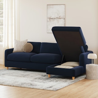 - Ottoman storage accessible by lifting the hydraulic-assisted chaise cushion