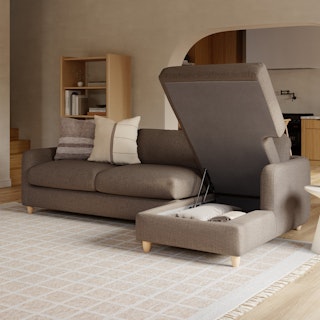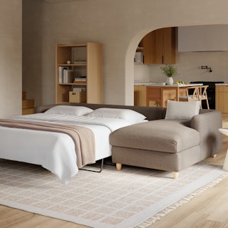 A sectional that can (figuratively) swallow you up... and still have room to store some odds and ends. With its low-profile curvaceous shape and ridiculously cushy cushions, the Vati is such a good-looking sofa you’d hardly know it’s actually a bed and also a treasure chest in disguise. Pop up the chaise seat to reveal a compartment for hiding away your seasonal throw pillows, or a big ol' pile of movie-night blankets. Then, remove the cushions, pull out the memory foam mattress, and voila! Great for when you want a little extra recline or need to house overnight guests. The best part? It’s so inconspicuous, only you get to decide who’s in the know.