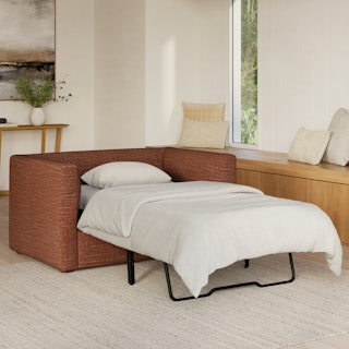 How do you want to feel? Elevated. Comfortable. Calm. Collected. With clean details and pleasing design heft, the Marina sleeper lounge chair manages to feel at once laid back and put together. Generously padded seats and armrests encourage long periods of meandering; fold out that memory foam mattress for a more serious nap. Upholstered with Napa fabric, the Marina is treated with a stain-repellant C0 finish, offering exceptional protection to your sofa while being free of gross forever-chemicals. Throw on your favorite 90s romcom and bask in a little nostalgia.