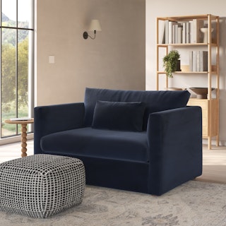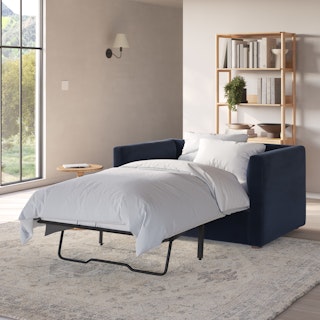 How do you want to feel? Elevated. Comfortable. Calm. Collected. With clean details and pleasing design heft, the Marina sleeper lounge chair manages to feel at once laid back and put together. Generously padded seats and armrests encourage long periods of meandering; fold out that memory foam mattress for a more serious nap. Upholstered with Hale velvet, the Marina is fade-resistant, easy to clean, and anti-crush. Throw on your favorite 90s romcom and bask in a little nostalgia.