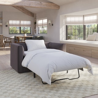 How do you want to feel? Elevated. Comfortable. Calm. Collected. With clean details and pleasing design heft, the Marina sleeper lounge chair manages to feel at once laid back and put together. Generously padded seats and armrests encourage long periods of meandering; fold out that memory foam mattress for a more serious nap. Upholstered with Hale velvet, the Marina is fade-resistant, easy to clean, and anti-crush. Throw on your favorite 90s romcom and bask in a little nostalgia.