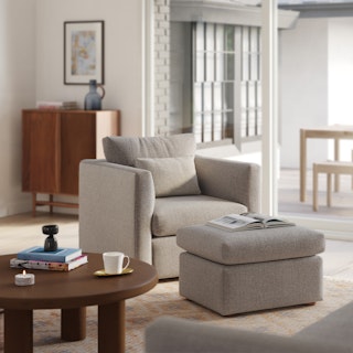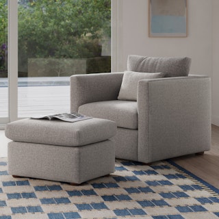 How do you want to feel? Elevated. Comfortable. Calm. Collected. With clean details and pleasing design heft, the Marina ottoman manages to feel at once laid back and put together. Upholstered with Clover fabric, the Marina is treated with a stain-repellant C0 finish, offering exceptional protection to your sofa while being free of gross forever-chemicals. Throw on your favorite 90s romcom, put your feet up, and bask in a little nostalgia.