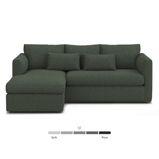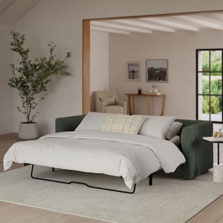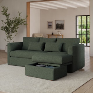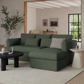 How do you want your sofa to feel? Elevated, comfortable, calm, and collected. With clean details and pleasing design heft, the Marina reversible sleeper storage sectional manages to feel at once laid-back and put together. Generously padded seats and armrests encourage long periods of meandering; grab the sheets from the hidden storage and fold out that memory foam mattress for a more serious nap. Upholstered with our super soft Bouclé fabric, the Marina is low-absorption with a signature bouncy texture. Throw on your favorite 90s romcom and bask in a little nostalgia.