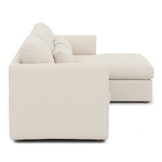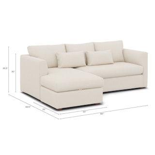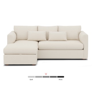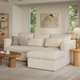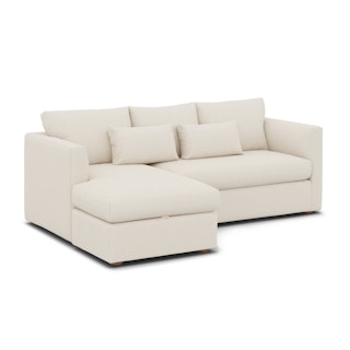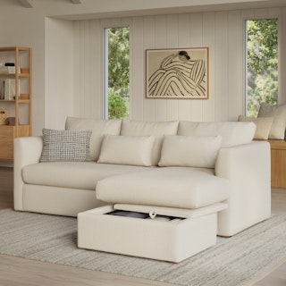 How do you want your sofa to feel? Elevated, comfortable, calm, and collected. With clean details and pleasing design heft, the Marina reversible storage sectional manages to feel at once laid-back and put together. Generously padded seats and armrests encourage long periods of meandering, while the hidden storage below the chaise can hide all kinds of goodies. Upholstered with our super soft Bouclé fabric, the Marina is low-absorption with a signature bouncy texture. Throw on your favorite 90s romcom and bask in a little nostalgia.