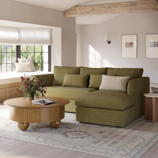 How do you want your sofa to feel? Elevated, comfortable, calm, and collected. With clean details and pleasing design heft, the Marina reversible storage sectional manages to feel at once laid-back and put together. Generously padded seats and armrests encourage long periods of meandering, while the hidden storage below the chaise can hide all kinds of goodies. Upholstered with Napa fabric, the Marina is treated with a stain-repellant C0 finish, offering exceptional protection to your sofa while being free of gross forever-chemicals. Throw on your favorite 90s romcom and bask in a little nostalgia.