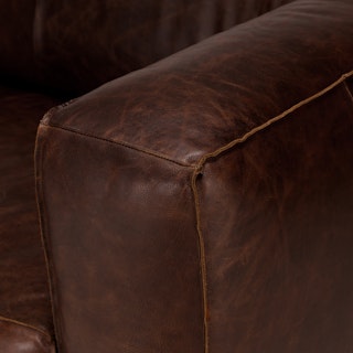 - Upholstered in Indiana Brown, our "pull-up" leather that's been treated with wax and oil for a smooth touch and evolving look
