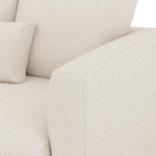 - Upholstered in a soft, non-absorptive bouclé fabric. Bouclé is an excellent choice for those who want an easy-to-care-for, style-forward sofa