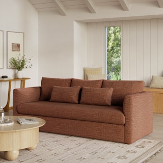 How do you want to feel on your sofa? Elevated. Comfortable. Calm. Collected. With clean details and pleasing design heft, the Marina couch manages to feel at once laid back and put together. Generously padded seats and armrests encourage long periods of meandering; bolster pillows make perfect props for a surprise nap. Upholstered with Napa fabric, the Marina is treated with a stain-repellant C0 finish, offering exceptional protection to your sofa while being free of gross forever-chemicals. Throw on your favorite 90s romcom and bask in a little nostalgia.