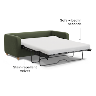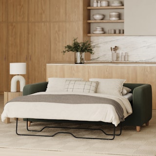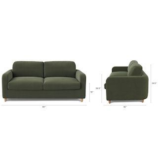 Vati 80" Velvet Sofa Bed - Natural Oak and Hale Fir Green