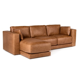 Looking for a leather sectional a little more specific to your style? We have plenty of leather sectional styles to suit your aesthetic needs. The Nirvana corner sectional, for example, brings a little cowboy ruggedness to your living room, but without the dirt or commitment of farm life. Upholstered in a semi-aniline leather, this hide has a thin layer of wax applied just before the dying process. This process gives the dyer more control over the look of the finished product — very important to the distressed look of the sofa.