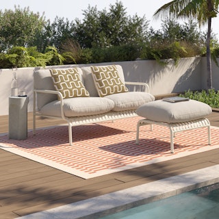 The white loveseat, cozy and pristine, nestled in your space like the pearl of the living room. It’s perfect for snuggling up and watching a movie, a post-work kickback, or an evening glass of wine — be careful with that last one.